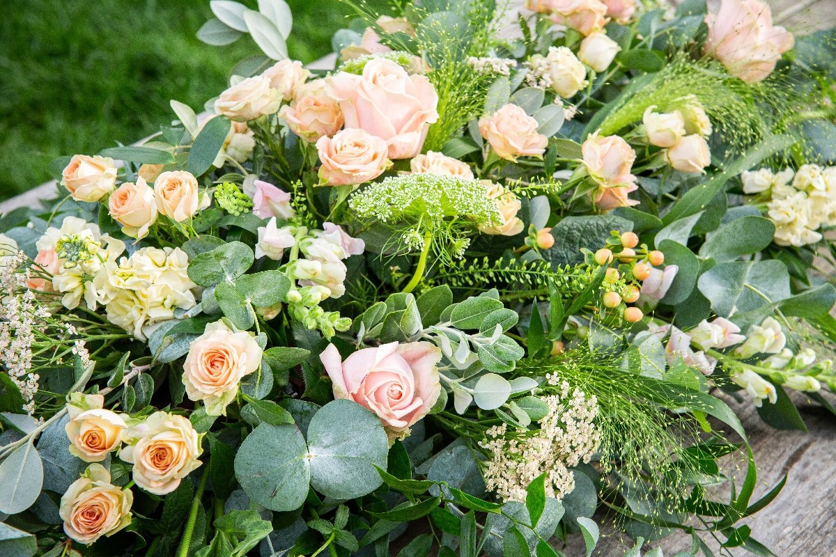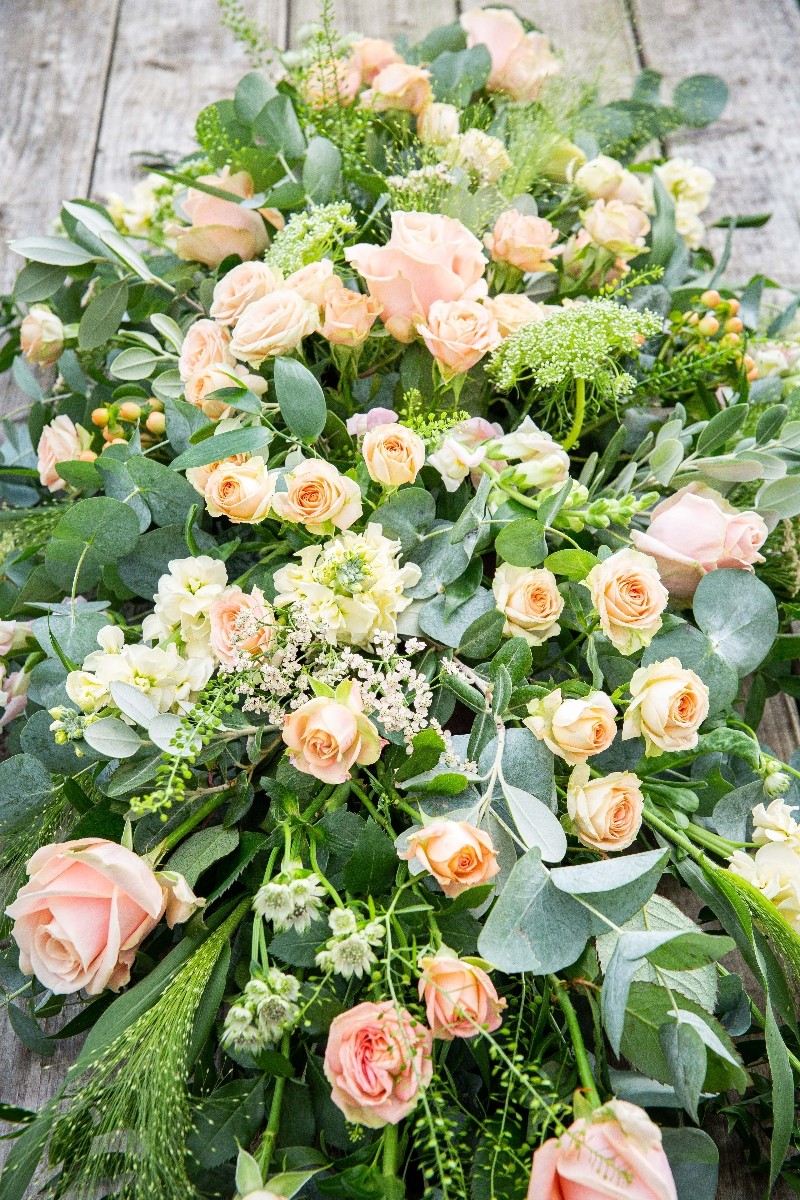 Made using seasonal flowers in your choice of colours and length. The example shown would be £195 for a 3ft spray. Please call to discuss your requirements.
