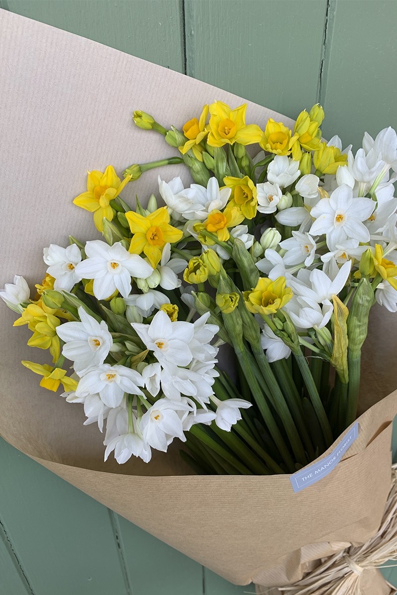 Beautiful scented Narcissi from the Scilly Isles , wrapped simply in paper , ready for the recipient to arrange into a vase